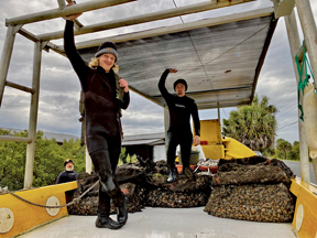 After a statewide ban on large-scale net fishing went into effect July 1, 1995, a government retraining program helped many local fishermen begin farming clams in the muddy waters. Today, Cedar Key’s clam-based aquaculture is a multimillion-dollar industry, and we are happy to report that we got to meet a few of the island’s hardworking clam farmers. We met Justin Anderson and his sons Cody and Joseph coming back from their morning harvest and still in their wetsuits. For them clam farming in Cedar Key is a family affair and they sell locally. Cedar Key, because of its location between two rivers, has become the nation’s leading producer of farm raised clams. Sustainable farming without pesticides or artificial feeds!