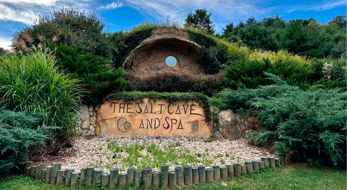 Our destination, The Pomona Salt Cave and Spa was located on a slow country road just a couple of miles outside of downtown White Sulphur Springs. The heavy days of the infamous virus were a major concern for me due to my seasonal asthma. But through our Montauk Salt Cave, I was familiar with the beneficial respiratory effects of salt = Halo-therapy, a complimentary and/or alternative treatment for conditions such as asthma, inflammation, the common cold, anxiety, allergies, and sleeplessness. My husband can confirm the sleepiness, as he takes a nap as soon as we lay down in the recliner chairs. I prefer to do a deeper breathing exercise that involves negative ion salt particles.