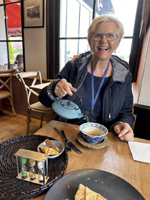 With our guided tour complete, we were granted an hour of free time to wander Honfleur’s narrow, cobblestone streets. We soon stumbled upon Le Bistrot à Crêpes, a delightful eatery on a corner lot by the harbor. Despite the bustling atmosphere, we were greeted with warm smiles and efficient service. Over steaming cups of strong Darjeeling tea and a plate of delectable apricot crêpes, we felt as though we had discovered a hidden gem. The crêpes, thin and delicate, melted in our mouths as we savored each bite.