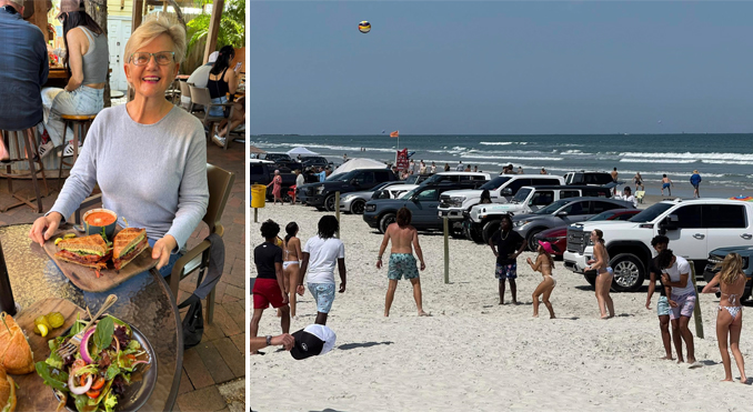 We couldn’t help but admire the many bathing beauties lounging under colorful umbrellas or playing in the surf, adding to the vibrant atmosphere of downtown. The heat was on. One of the things that struck us was the reassuring presence of fit, good-looking police officers stationed on every corner. Their friendly demeanor and attentive vigilance ensured that the spring break joy didn’t get out of hand, allowing everyone to relax and enjoy themselves. It was comforting to know that safety was a priority, and it added to the carefree vibe of the day.