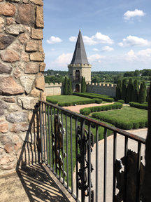 The Kentucky Castle, also known as Castle Post, is today a luxurious hotel on a 55-acre estate, hosting weddings and special events, and featuring an incredible farm-to-table restaurant, recently named the #1 most romantic restaurant in the State by Reader’s Digest. We checked in right in time to attend an excellently guided, interesting tour of the castle and the surrounding grounds. Our accommodations for the night turned out to be the Presidential Terrace Suite, delightfully spacious and tastefully furnished with beautiful views of the grounds. The precious linens on the king sized bed were truly suitable for a king.