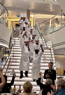 Ms Rotterdam’s culinary presentation under the ever-watchful eyes of Executive Chef Ali, was a feast for the senses. We especially adored his fresh-cooked seafood creations, which changed every time we reached a new port. From the more relaxed Lido Market with its panoramic views and creative hot and cold service stations, to the poolside New York Deli and Pizza, Dive-In’s for burgers and dogs, to complimentary Dutch treats and pea soup at the Grand Dutch Cafe, and the Dining Room’s visual splendor and bustling atmosphere, almost every meal was a treat. For an additional fee, one may dine at the Tamarind, the Pinnacle Grill, the unique Rudi’s Sel De Mer, or the Canaletto.
