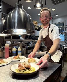 We began with a bright spirit salad and a smoked trout pâté so silky it seemed almost unreal, followed by roast chicken — the kind you remember long after the plate is cleared. Dessert was a strawberry-rhubarb napoleon, a creation of Pastry Chef Kyle McAlee, whose house-made breads and jams have become farm legends.
