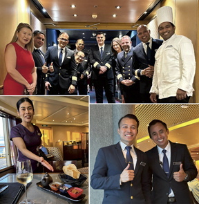 I must mention our outstanding dining experiences aboard Eurodam. The Main Dining Room delivered exceptional service through our waiter Leo, the wonderful Maître d’s team (Damian, Noel, Suta, & WahyuWahyu) and the personal attention of Stefan Miles, the handsome Food & Beverage Director. But the Tamarind specialty restaurant hit the jackpot with its creative cuisine by Chef Nur Hadi, and our highly entertaining waitress Ing-Ing and her team.