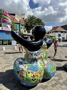Curaçao’s colonial legacy unfolded for us when we climbed up to the Hato Caves, where ancient Caiquetio Indian markings date back 1,500 years. Despite the cave’s warmth, its limestone formations, including the famous Madonna statue, and the resident fruit bats, captivated us. Later, Willemstad’s UNESCO-listed historic center dazzled us with its iconic merchant houses, their vibrant hues reflecting Dutch-Caribbean heritage along the waterfront. The Punda Love Hearts at Handelskade offer a perfect photo opportunity, with three large steel lattice hearts hanging full of intertwined love locks from around the world, situated right next to the floating Queen Emma Bridge. Since 1888, this majestic bridge has swung back and forth to allow large ships to enter the Schottegat port in Willemstad. Stretching 548 feet across the St. Anna Bay, the bridge welcomes both curious travelers and container ships alike.