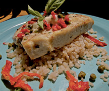 Following all of those lovely delicious plates, started the parade of additional dishes sent from Chef Amy. Once again, we loved everything she sent. The PEI Mussels were cooked to perfection in roasted garlic, lemon and wine broth- although she does offer marinara, fra diavolo, or cilantro lime cream as well. The generous portion was served hot, aromatic, and with toasted bread for dipping. Next was the Lobster Roll BLT, I love a good lobster roll and have had many here in Montauk- this has joined the ranks of my favorites. The toasted bun was overflowing with chunks of claw, tail, and knuckle meat with a light dressing. Since it was a BLT there was some lettuce, diced tomato and it was topped with crispy strips of bacon. This was one of the three styles she offers and it was out of this world. Finally, from their House Specialties list, was the Crunchy Seared Tuna Wrap. The black bean wrap encasing seared tuna with crushed wasabi peas, tempura flakes, crispy spinach, and cusabi gave the illusion of a really big sushi roll- but oh what a flavor, texture sensation. The crunchy peas, flakes and spinach with the tender tuna is an unbelievably unique and delicious creation.