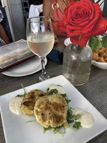 While there are so many things to do when visiting Montauk, one of the best is probably dining out with good friends in a relaxed and lovely atmosphere. Recently we did just that when four of us had dinner together at the Gin Beach Café. It is located on East Lake Drive at the Montauk Anglers Club & Marina, a premier sportfishing marina, and less than one mile from the Montauk inlet. The restaurant is owned by Amy Breidenbach, who also has the recently opened “Caps” on West Lake Drive. With its perfect location, every table at Gin Beach Café has an absolutely gorgeous view of the boats docked at the marina with the evening sunlight glistening on the water to complete the picturesque panorama.