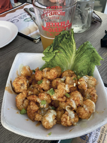 Upon entering Gin Beach Café, we were greeted by our server, Jaimie, who welcomed us with a warm smile and friendly demeanor. Although most of the tables were occupied, after we were seated, she never made us feel rushed to place our order or to hurry along when deciding which of the many choices to start with. Taking time to decide, drinks were ordered first as we discussed the menu. House Cocktails and Specialty Drinks, spirts and beers fill the whole back page of the menu, making a decision a challenge. There were creative names such as Fire Island Rocket Fuel (amaretto, pina colada, 151 floater), Fishtales Mango Bellini (personal prosecco, black cherries), or a Montauk Mule (vodka, ginger beer, mint & lime) to name only a few on the first side of the page. Add to that ten House Cocktails, canned spirits, beers and you’ll understand why selecting from this inclusive list becomes daunting. One in our party ordered the Expresso Martini, made with vodka and Kahlua with coffee beans garnish, which she proclaimed to be perfect and not too sweet. Two wine selections and a draft beer rounded out our starter beverages.