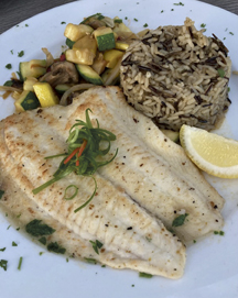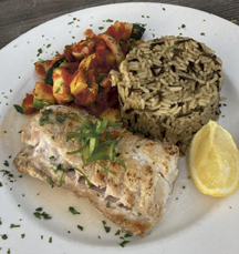 The meat choices listed a 14 oz NY strip steak, baby back ribs with sweet potato fries and Cole slaw and a sauteed chicken breast with fresh mozzarella and roasted peppers. After much back and forth over what to order, Joel selected the Pan Seared Local Tile Fish, accompanied by wild rice, ratatouille, roasted garlic and red pepper butter. The generous size piece of fish, cooked to perfection was a winner and he was pleased at his exploration into a new item he hadn’t tried yet. All of us considered this to be a high compliment as Joel enjoys fishing on his boat and brings home his catch which they cook at home, using one of his many recipes. Actually, he happens to keep is boat at the same marina Gin Beach Café is located. That’s why he and other fisherman friends are frequent diners there and had recommended it to us for our dinner out. (By the way, a side note to anglers, Gin Beach offers “You Hook ‘Em We Cook ‘Em” option on the menu.)