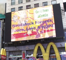 12:02 – 12:06 Woodstock Forever: Peace, Love & HOPE Movie trailer Billboard above McDonalds and Moment of Silence