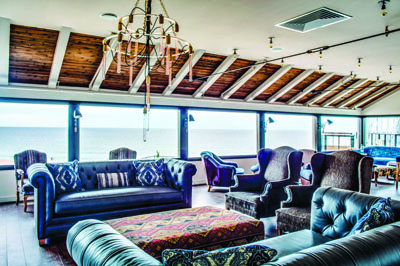 is a classy all-inclusive hideaway with a wall of windows welcoming an ocean view and an outdoor tented deck, a fireplace, game table, DJ station for weekends, and extensive bar. The plan is to continue with music, both DJ and live performances, and to begin serving daily “Afternoon Tea”.