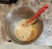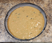 - With a rubber spatula, mix in the shredded carrots and vanilla…and raisins and walnuts (if using). Pour batter into pan, level, and tap on the counter to remove air bubbles.