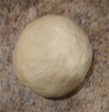 Once it is in the pan, use your oiled hands to form it to the pan. Don’t worry if you develop some holes,,,the dough is very forgiving. Just use your hands to “repair” them. Form whatever rim around the pie you would like. I prefer a very small rim to allow toppings in every bite.