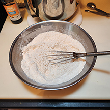 - In a medium bowl, whisk together flour, baking soda, baking powder, salt and cinnamon. Set aside.