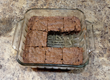 When I first ran across this recipe…before I made my changes to it, increasing this, adding that, etc….it said it made 16 brownies. Well, I just couldn’t see it. Those brownies seemed very small. So my recipe, although baked in the same size pan, only makes 9 brownies. You do as you like…but 16? Really? From an 8”x8” pan? I kind of thought that 9 was a little chintzy…LOL.