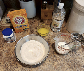 - Combine flour, sugar, baking powder, salt and baking soda in a large bowl and whisk until well combined.
