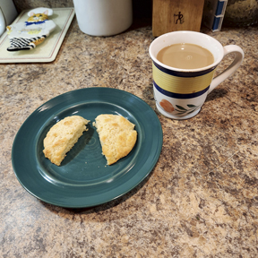 I found a recipe, and after working with it for a while, came up with my own version. The original calls for cutting in the cold butter, which I always found to be a hassle. So, I melted it…and it worked! Then I messed around with the leavening, added sugar and made sure all the ingredients are divisible by two, so even small households can use the recipe. As printed, the recipe makes around 10 biscuits. No buttermilk, don’t worry. Put a tablespoon of white vinegar in your measuring cup and fill it to the 1 cup line with regular milk. Stir and let sit 5 minutes. Now it has the same acidity as buttermilk and will react with the leavening.I hope you enjoy these quick, easy, and tasty biscuits.