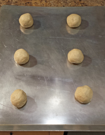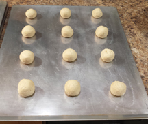 Gradually blend in the dry ingredients. Refrigerate the dough for ½ hour to firm up. Preheat oven to 375 degrees.- Roll tablespoons (or 2 tablespoons) of batter into balls and place on ungreased cookie sheets…12 of the smaller cookies or 6 larger ones per cookie sheet.