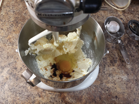 - In a large bowl, or in the bowl of a stand mixer, cream together the butter and sugar until smooth and light. Beat in egg and vanilla until combined.
