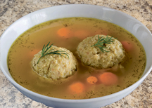 - Gently add the cooked Matzo Balls, along with the par-cooked carrots and celery, into the soup about 15 minutes before you’re ready to serve, while gently heating the soup. Don’t skip this step, as the Matzo Balls will absorb some flavor from the stock. Serve garnished with the Fresh Dill.