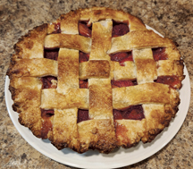 - Lay ½ of the strips over the filled pie crust, leaving the same space between them as the width of the strips. Then weave the remaining strips, one at a time, with the first set of strips, forming the lattice. Fold the edges over and crimp.