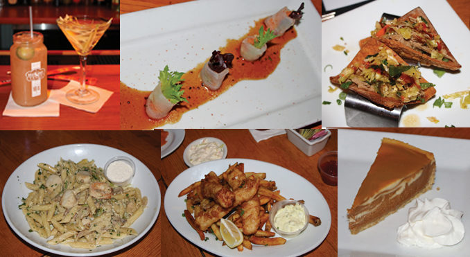 Entrees include a variety of land to the sea choices; steaks, fish, pasta and an array of Sushi, Sashimi, Nori & Specialty Rolls. Always a favorite, the Tempura Codfish Fish Fillets and Chips are crisp, light, tender and irresistible, served with crispy fries and tartar sauce. A dish I have a difficult time resisting is the generous portion of gently seared Pan-Seared Sea Scallops perched atop mashed sweet potato puree & rainbow Swiss chard. Shrimp & Scallop Penne Pasta is blended with mushrooms, asparagus, and a basil pesto cream sauce prepared al dente with shrimp that snap and