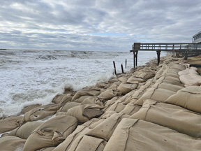 Montauk has been waiting years for the promised and much-needed sand to be pumped onto the downtown beach. The numerous early winter storms completely wiped out the sand right up to the ocean motels, exposing the sand-filled geotextile bags the army core engineers had placed there in 2016.