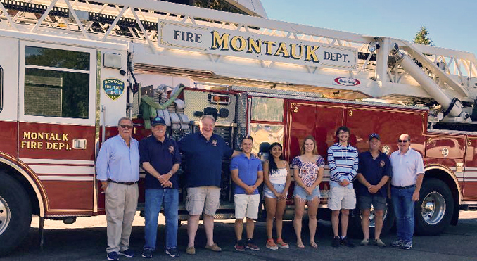 I would like to take this opportunity to congratulate the four Montauk Fire Department scholarship recipients for 2021. These four students have recently graduated from East Hampton High School and have been awarded $3,000.00 each per year through the Montauk Fire Department’s Scholarship Program. This program has been assisting Montauk students with their continuing education since 1970. Also, a special thank you to Mr. Harold “Herb” Herbert who has been the chairman of this committee since its inception. Please enjoy the photo above of the students being congratulated by me, First Assistant Chief Scott Snow, Second Assistant Chief Ken Glogg, Scholarship Chairman Herb Herbert, and scholarship committee member Ed Ecker Jr. Best of Luck to all!