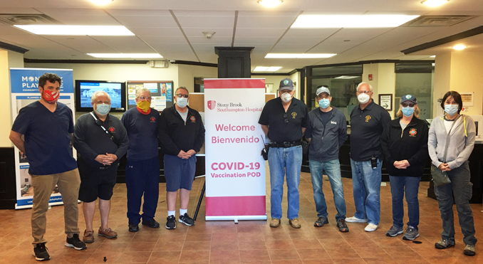 I would like to thank our Ambulance Company No. 4 men and women who assisted at the Stony Brook Southampton Hospital COVID-19 Vaccination Clinic at our neighboring Montauk Playhouse on Thursday, May 13th. Our volunteers assisted with the vaccination effort, and stood by with an ambulance in case it was needed (which, thank God, it was not). Please see the group photo above by Honorary Chief Richard Lewin, who also volunteered at the Clinic that day.