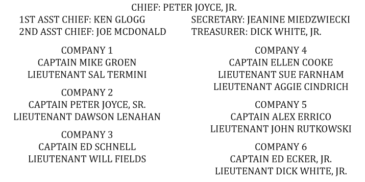 So, as you can imagine I have had the opportunity to be around the Department since I was young. I became actively involved when I joined the Junior Fire Department in 2006. I was officially voted into the Department and have been a member of Company No.2 from the beginning. I am proud to say that I have followed my grandfather, Former Chief Sam Joyce Sr., my father, Peter Joyce Sr. into the ranks of Chief of the Department which has historical significance as this is the first time this has happened in the Montauk Fire Department. I am excited to serve my Department and Community from my new position as Chief and I am looking forward to working with my fellow Chiefs, Officers, men and women of the MFD in 2025. Having said that, let me introduce you to the new slate of Officers for 2025. All were officially sworn in on New Year’s Day 2025.