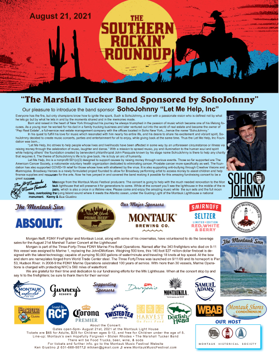 Montauk Lighthouse Benefit: THE MARSHALL TUCKER BAND sponsored by SohoJohnny! August 4, 2021 Stefan Featured, Montauk Columns 0