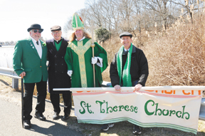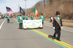 Crowds of thousands lined the barracaded streets of downtown Montauk, as the two-hour parade on Sunday, March 24, wound its way from the Montauk Fire Department, down Edgemere Road, and finally down Main Street all the way to the IGA store. The grandstand was set up on the Village Green, with bleachers filled with onlookers and local dignataries who judged about 70 contingents that entered the parade. As in years past, the emcee of the parade was Rick White, Jr., wearing his Irish sweater and cap, and entertaining the crowd.