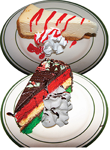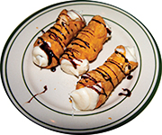 layers separated by sweet fruit preserves and covered in a rich chocolate coating, and traditional Cannoli Italian pastry consisting of a crisp, tube-shaped fried dough shell with a hint of cinnamon filled with a sweet, creamy ricotta cheese filling and chocolate chips. Wow, take your pick, each one is sure to please whatever sweet tooth craving you may have. Varieties vary so check with your waiter.