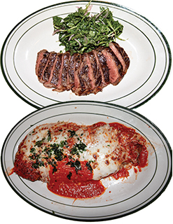 After enjoying that amazing array of culinary delights, chef presented us with one of each of the numerous entrees available on the Pasta, Parm, and Mains sections of the menu. Grilled New York Strip, also available as pizzaiola, was paired with a simple accent of greens in a gentle vinaigrette allowing the natural goodness of the perfectly grilled steak to shine. If Chicken Parm is your ‘parm dish’ of choice [eggplant and shrimp are also available], Monte’s is a wonderful spot to enjoy it. Creating a meal you’ll want to order again and again, the chicken is pounded tender in the traditional Italian style, cooked with a thin flavorful breadcrumb coating, then finished with the Monte’s tomato sauce that never fails, and just enough mozzarella, parmesan, and basil fritto.