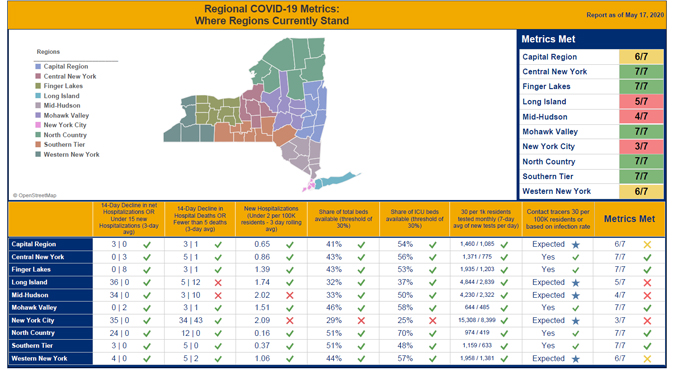 New York will reopen on a regional basis as each region meets the criteria necessary to protect public health as businesses reopen.