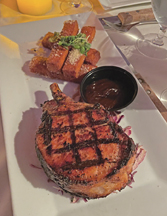 Black Pepper Teriyaki Glazed Grilled Pork Chop served with- absolutely delicious- crispy truffle oil polenta fries, apple butter, and a cabbage carrot escabeche. Pork chops are one of my favorites, and this one did not disappoint, flavorful and cooked perfectly all the way through.