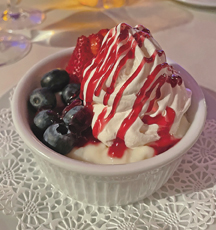 Of course, what’s a fulfilling meal without a ‘sweet’ ending. Being quite full and a chocoholic, my choice would have been the Flourless Chocolate Cake with fresh berries, but I was unable to do it. However, my sweet-toothed mother-in-law decided a little Rice Pudding and Cheesecake Chimichanga were in order; a good choice since not all the desserts are made in house, but these two are. According to the dessert expert each was fabulous, yet the cheesecake chimichanga seemed to be the table favorite. Be sure to check the nightly sweet treat offerings.