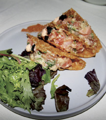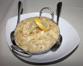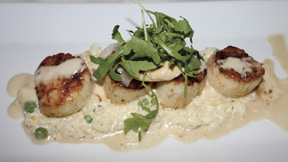 The entrees range from a Black Pepper Glazed Grilled Pork Chop, Greek Chicken, or a few Steak options, to Lobster Pizza, to Tuna, Salmon, or Sea Scallops, to a choice of three pasta dishes…a bit of something for everyone. Chef Ronnie sent us a lovely selection, beginning with the tender and daintily