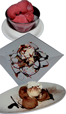 Since any deliciously savoy meal like the one we enjoyed, can only be enhanced by something sweet, Muse has arranged offerings of tasty after dinner drinks and desserts. Port, Baily’s, Frangelico, Drambuie… NY Cheesecake, Key lime Pie, Tiramisu… so many choices. Chef Larry sent us a dish of delicately sweet Raspberry Sorbet, as well as the decadently moist Brownie Sundae and stuffed Fried Donuts with chocolate sauce, both served with vanilla ice cream and fresh whipped cream. YUM!