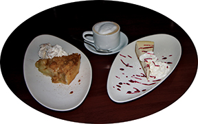 Dessert? Well of course! Dense and creamy NY Style Cheese Cake with a graham cracker crust served with a raspberry drizzle, was plated along with a slice of warm naturally sweet Homemade Apple Pie created with a savory streusel top and a scoop of vanilla bean ice cream. An ideal ending to our evening, heartwarming decadence on a plate. Be sure to check with your server for the list of yummy dessert selections.