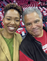 Sixers employees were filing in and some fans were tailgating. I filled my empty stomach in the press catering room. It had a table full of Brioche French toast with hot banana syrup in a cast iron pot and thick slices of maple glazed bacon and scrambled eggs in two heated catering trays. There were Bowls full of fresh blackberries, blueberries and strawberries for the French toast. They had a cold sandwich station with different bread, cold cuts and fixings. They also had oatmeal, coffee, tea and a soda machine. With an hour before tip it was time to check out the team’s warming up. As I headed towards the court I walked past David Aldridge, a writer for The Athletic, talking with Knicks Coach Tom Thibodeau. Knicks Isaiah Hartenstein and Alec Burks were finishing up their warmup, but I was lucky enough to watch Josh Hart go through his pregame warmup. He systematically took shots one handed close to the basket from different positions eventually moving further away and ending with 3 point shots. It was 12:20pm. I enjoyed meeting Monica McNutt from ESPN and MSG Network during Josh’s warmup. Josh Hart signed a bunch of stuff for fans hanging over the railing before heading into the locker room.