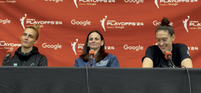 Later in the press room I noticed a lineup alert posted by Underdog WNBA on X at 12:17pm. Leonie Fiebich would start ahead of Courtney Vandersloot. I had asked Sandy about gamesmanship when playing a team 3 times in 5 days. She had given me my answer by shuffling the starting lineup and not announcing it from Thursday 9/19 to Sunday 9/22. Leonie Fiebich was the star of Sunday’s game. She scored 21 points on 7 for 8 shooting. She went 4 for 4 on her 3 point shots. The Liberty won 83-69.