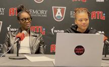 Three days later on Thursday 9/19 I drove up island to cover the final regular season game between the NY Liberty and the Atlanta Dream. Atlanta needed a win to get NY in the opening quarterfinal round of the WNBA playoffs which would start Sunday September 22nd. The Dream jumped out to a 21-15 1st quarter lead with an 11-0 run from 6:39 to 4:07 minutes left in the quarter. They led 43-30 at halftime with an 8-0 run from 7:50 to 6:06 of the first half. After three quarters it was 66-49 with Atlanta having a 10-0 run from 8:16 to 5:56 left in the third. The Liberty went on an 8-0 run in the fourth quarter to lose by eleven 78-67. The story of the night was Atlanta’s WNBA legend Tina Charles from Jamaica, Queens and Christ the King High School breaking TWO WNBA records! Tina set the all-time WNBA career rebounds and double/doubles records with her 10 points and 10 rebounds. After the game I asked Tina about continuing the ride to the playoffs with the win. She answered, “we came here with our bags packed… We knew we were going to take care of business.. For us honestly, playoffs have started maybe a week ago because of the situation we’ve been in… The toughness that we have.. growing before each other’s eyes.” Her leadership was impressive. Tina was the number one pick in the 2010 WNBA draft. Sitting next to her was Naz Hillmon who was picked in the 2nd round of the 2022 draft.