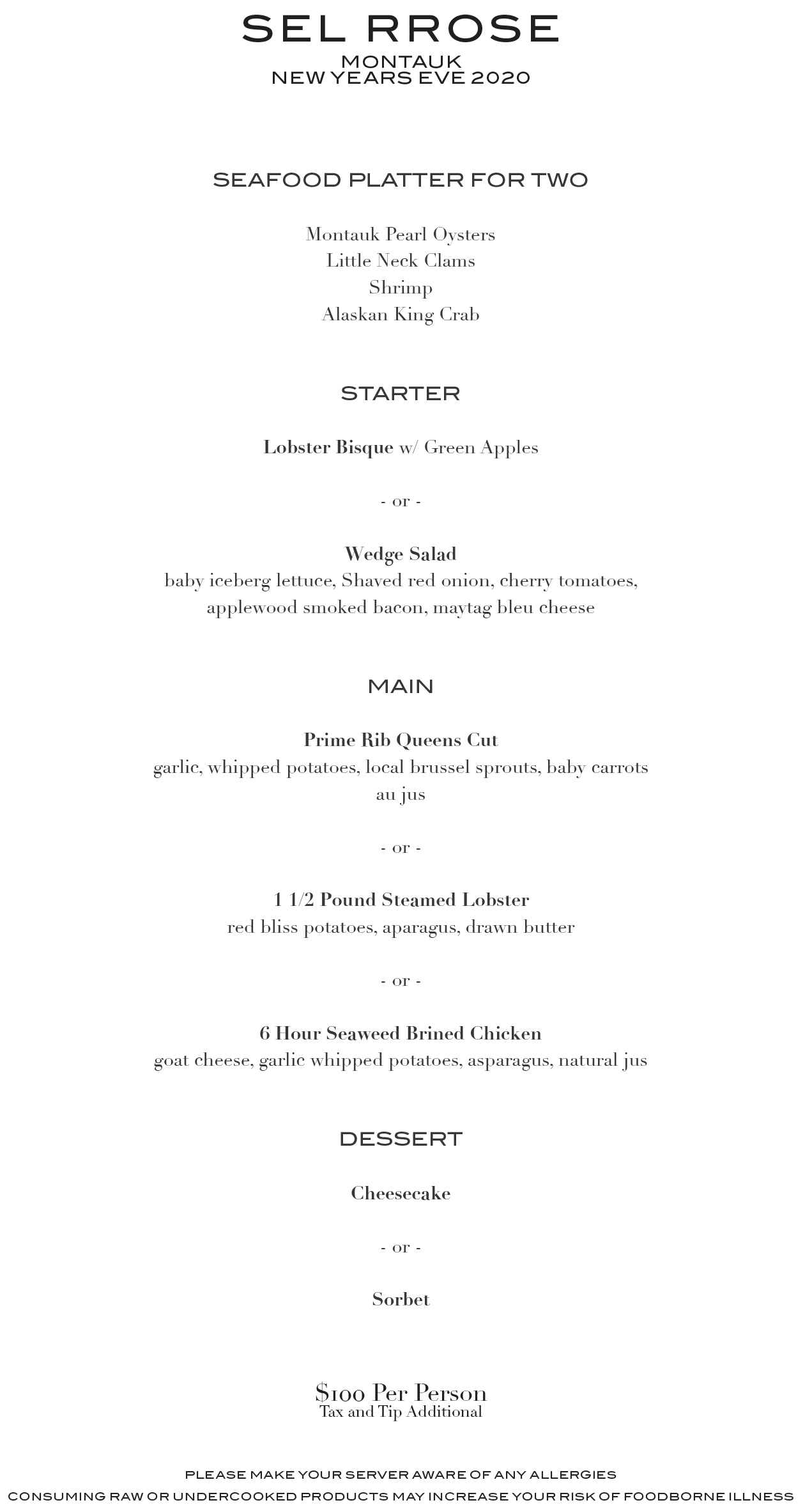 Chef Shawn Hewitt at Sel Rrose has created an elegant New Year’s Eve Menu to enjoy in house, or for take-out.