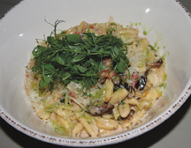 Cavatelli is a staple on Chef Frankie’s menu, however how it’s prepared changes with the seasons. Blended with black-garlic-confit cream sauce, grana padano, roasted red pepper, shitake mushrooms and Meyer-lemon basil, this Cavatelli creation does not disappoint.