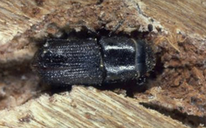 According to the NYS Department of Environmental Conservation website [https://dec.ny.gov/nature/animals-fish-plants/southern-pine-beetle], “All hard pine trees are susceptible to an infestation of southern pine beetle, including pitch pine, red pine, and jack pine. The adult beetle enters the tree through crevices in the bark and then creates S-shaped tunnels in the cambium tissue, just beneath the bark. This disrupts the flow of nutrients, killing the tree in typically 2-4 months.”