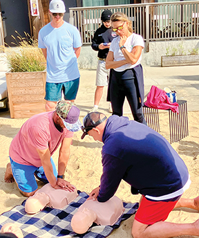 T.J. Calabrese and Bob Miller led lessons on CPR, water rescue techniques and reviewed skills for the attendees new to the water as well as seasoned surfers in the already close surf community for an afternoon of information and practice. As a local community and ambassadors to our beaches, there was an emphasis on the shared responsibility to educate and help others enjoying the east end. And most of all to keep everyone safe. Happy surfing!