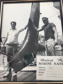 Their son Jim Sweetman, also a fisherman, caught an 841 lb. Mako shark on the Ebb Tide in August 1979. The Mako was donated to The Montauk Chamber of Commerce by his father,