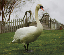 The Mute Swan is very intelligent, with a variety of unique characteristics that makes it a wonderful animal to observe. There are three species of swans in North America. The Trumpeter Swan and the Tundra Swan (also known as the Whistling Swan). They are both native to this continent; however, the Mute Swan is a Eurasian and North African species that was introduced here and now breeds in the wild. The Mute Swan gets its name for being less vocal than other swans. Also, while all other swans communicate with vocalizations during flight, the mute swan remains silent.