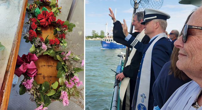 The 69th Blessing of the Montauk Fleet took place on Sunday, June 8 under cloudy skies, with breaks of sun and mild weather. Captain Frank Braddick, of the “Hurry Up” charter boat, was on board the Viking Starship to welcome all the clergy and families of the 14 people who worked on the water, who have died in the past year. The families brought beautiful flower wreaths to throw in the water to commemorate their loved ones.
